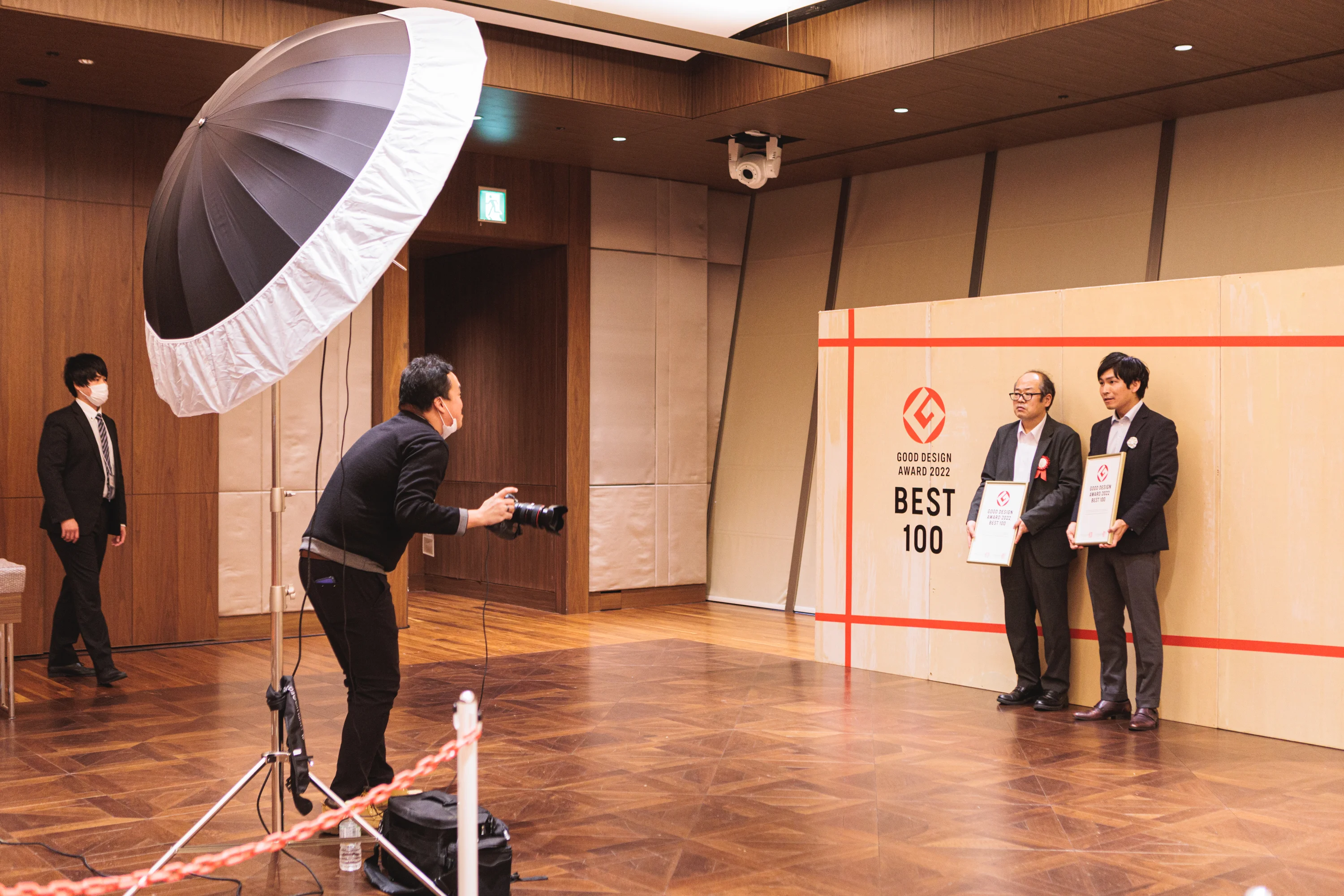 表彰状・トロフィーの授与など、個別の表彰の場面はありません(登壇 はグッドフォーカス賞・グッドデザイン金賞・ロングライフデザイン賞のみ)。
